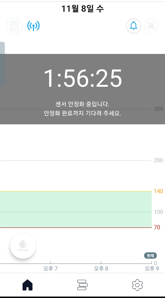 처음에는 2시간 동안 센서의 안정화 시간이 필요하고 이후에는 즉각 혈당 측정을 2번 해야한다.